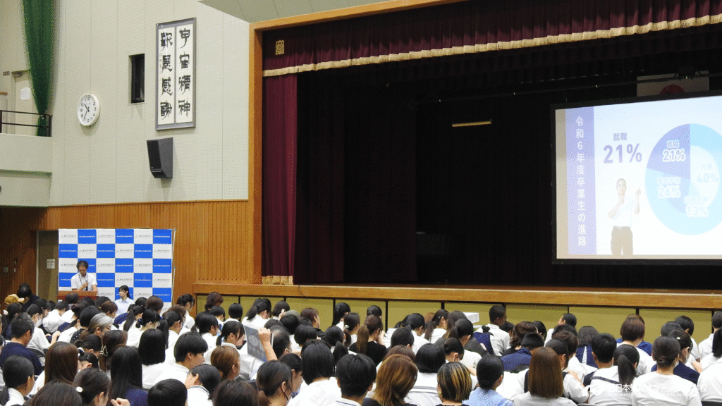 校門を入ってから生徒たちが親切に案内をしてくれました。日頃の先生方の指導を感じることができました。駐車場案内が分かりやすくて良かったです。インスタやホームページで積極的に発信されているので、学校の様子がよく分かり、いつも楽しみにしています。