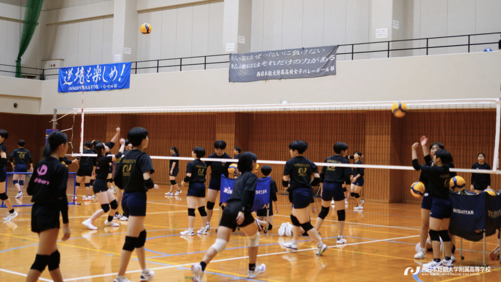 先輩が優しく接してくれました。全体の雰囲気が明るくて全員が1本1本を大切にプレーしていて良いと思いました。私もあんな風になりたいです。(女子バレー部)