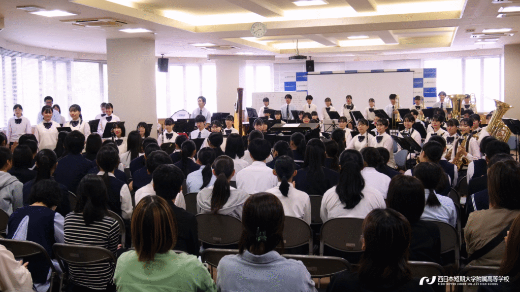 冒頭に吹奏楽部1・2年生約90名による「ウェルカムコンサート」を開催しました♪