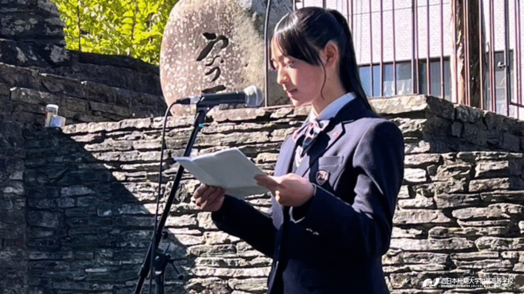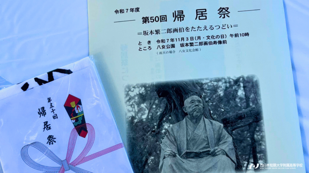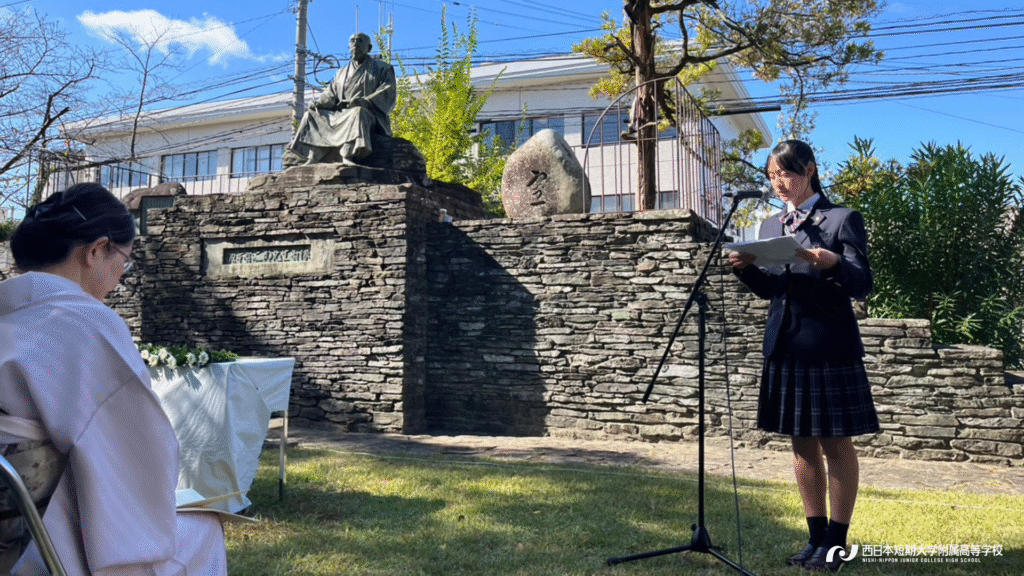 令和7年11月3日(月・祝)に開催された「第50回帰居祭 =坂本繁二郎画伯をたたえるつどい=」にて、本校1年6組西田 優奈さん(八女市立南中出身)が児童生徒作文発表にて高校生代表として作文朗読を行いました。