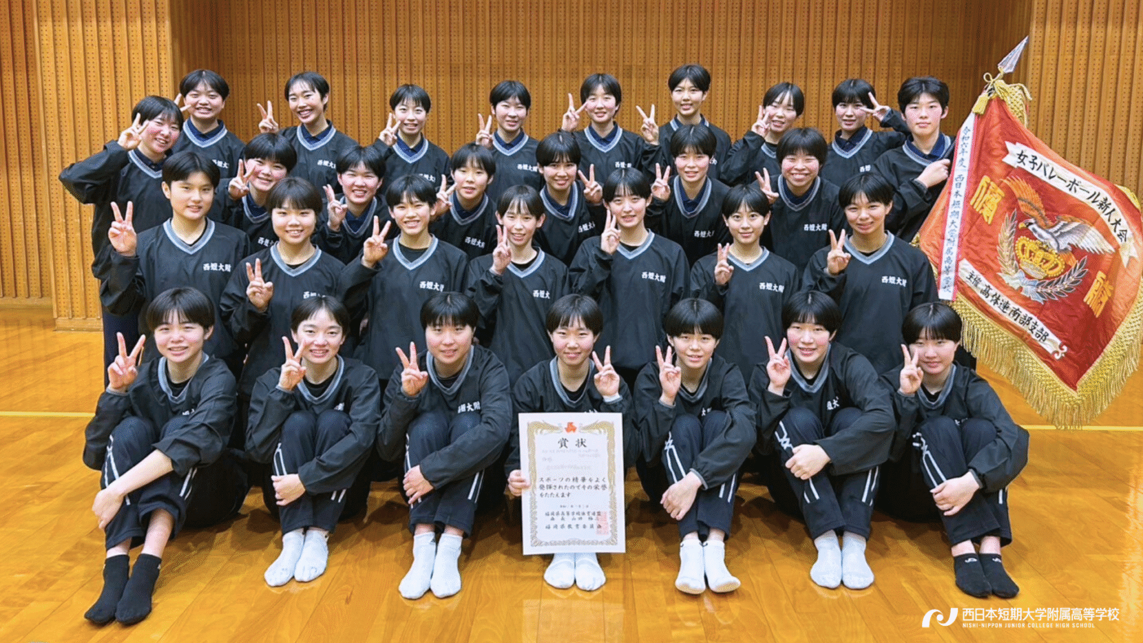 女子バレーボール部が標記大会にて優勝いたしました。強豪ひしめく南部ブロックにおいて2年連続の優勝、そして今年5月のインターハイ南部ブロックに続く優勝です。応援いただきました皆様、誠にありがとうございました。女子バレーボール部は、令和8年1月18日(日)から行われる福岡県大会に南部ブロック優勝校として出場します。今後とも女子バレーボール部の応援をよろしくお願いいたします。