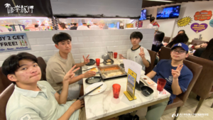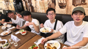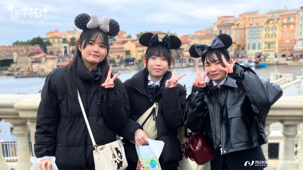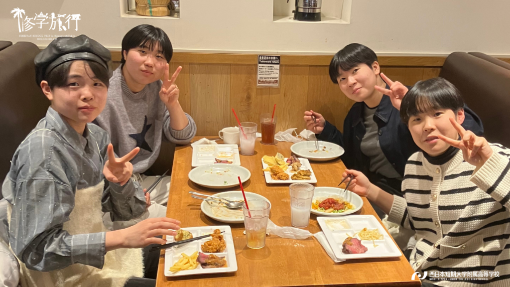 午前中は現役東大生で株式会社カルペディエム社長の西岡壱誠氏の講演会に参加しました。氏のプロフィールによると「偏差値35の学年ビリから、2浪で自分の勉強法を一から見直し、どうすれば成績が上がるのかを徹底的に考え抜いた結果、東大に合格」とあります。主体性をもって将来を考えることについて学ぶ機会となりました。その後は、都内班別自主研修。夜はレインボーブリッジが見えるお台場の「THE OVEN」で夕食をとり、舞浜へ向かいました。