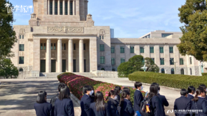 朝9時に国会議事堂へ向かいました。今回は衆議院を見学。日本政治の中枢である国会議事堂での経験を通して、間もなく選挙権をもつ高校生たちは、自身が今後の日本社会の中心を担っていくという自覚を持つことができたのではないでしょうか。その後は、お台場で3時間ほど自由散策。昼食も各自で済ませ14時に羽田空港に到着。15時の飛行機で羽田を発ち、夕方に福岡に戻ってきました。