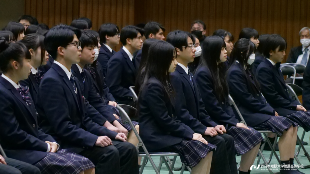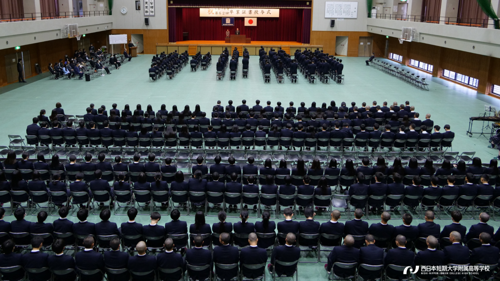 卒業式当日に保護者席となる場所に1学年、2学年の生徒が着席し、先輩方の高校生としての最後の姿を目に焼き付けました。