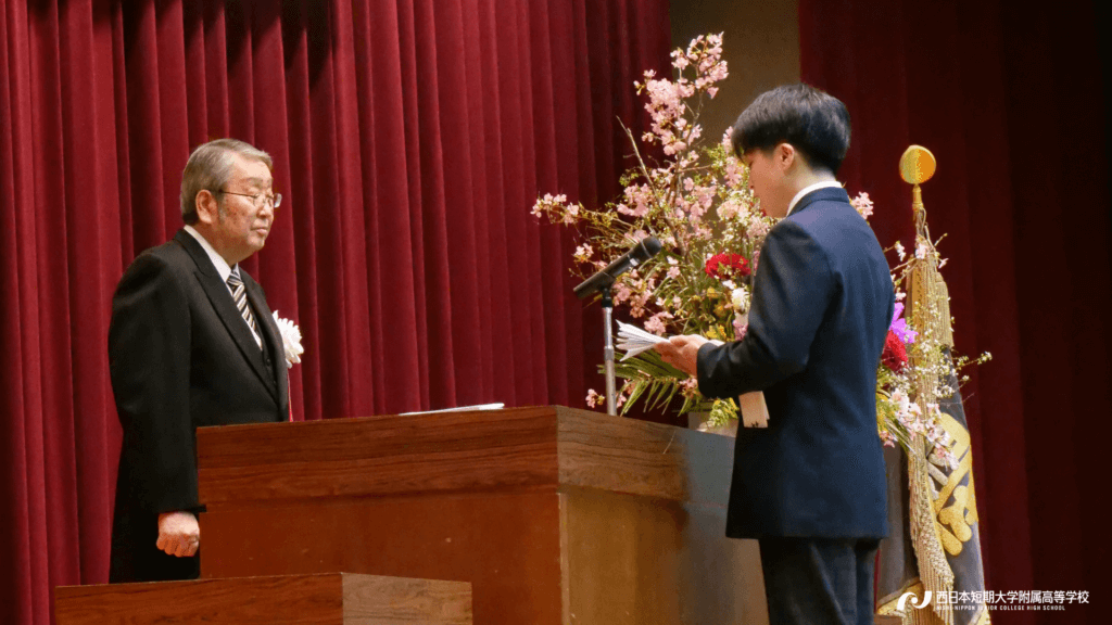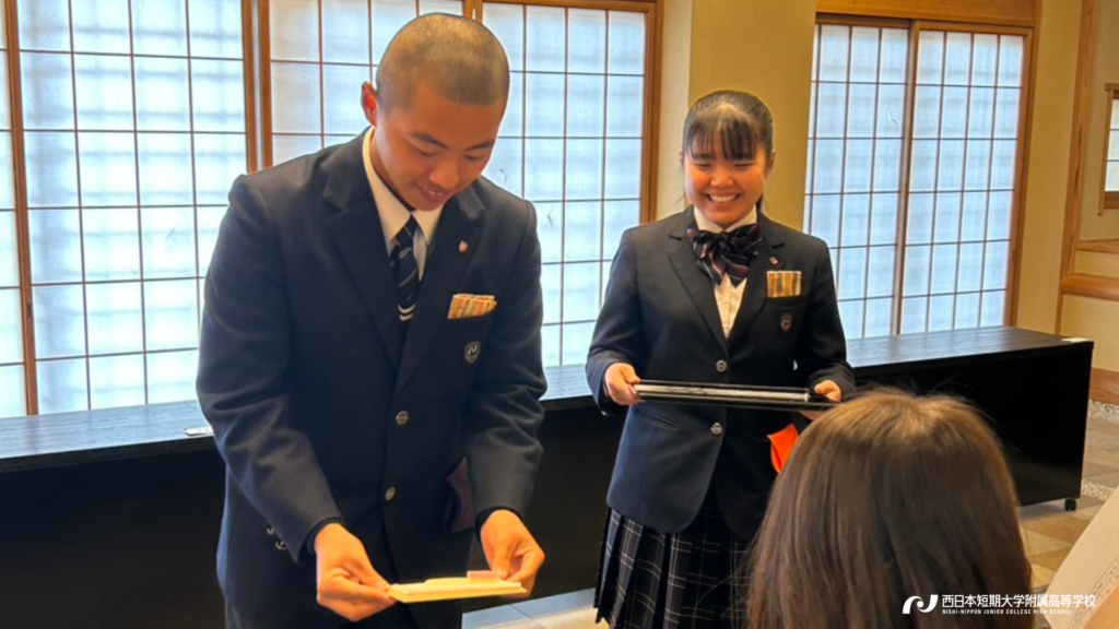今年も、有志生徒がご来賓の皆様に八女のお茶を振る舞いました。本校では1・2年生が茶道の授業を必修で学んでおり、入学式や卒業式の折では学習の実践の場として、お茶をお出ししております。