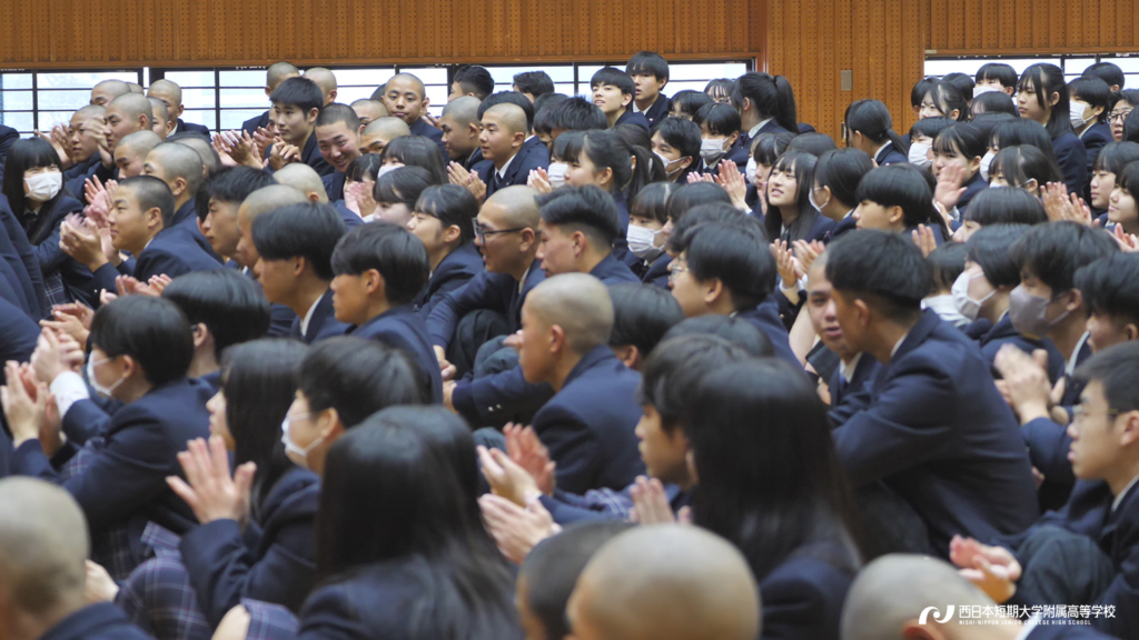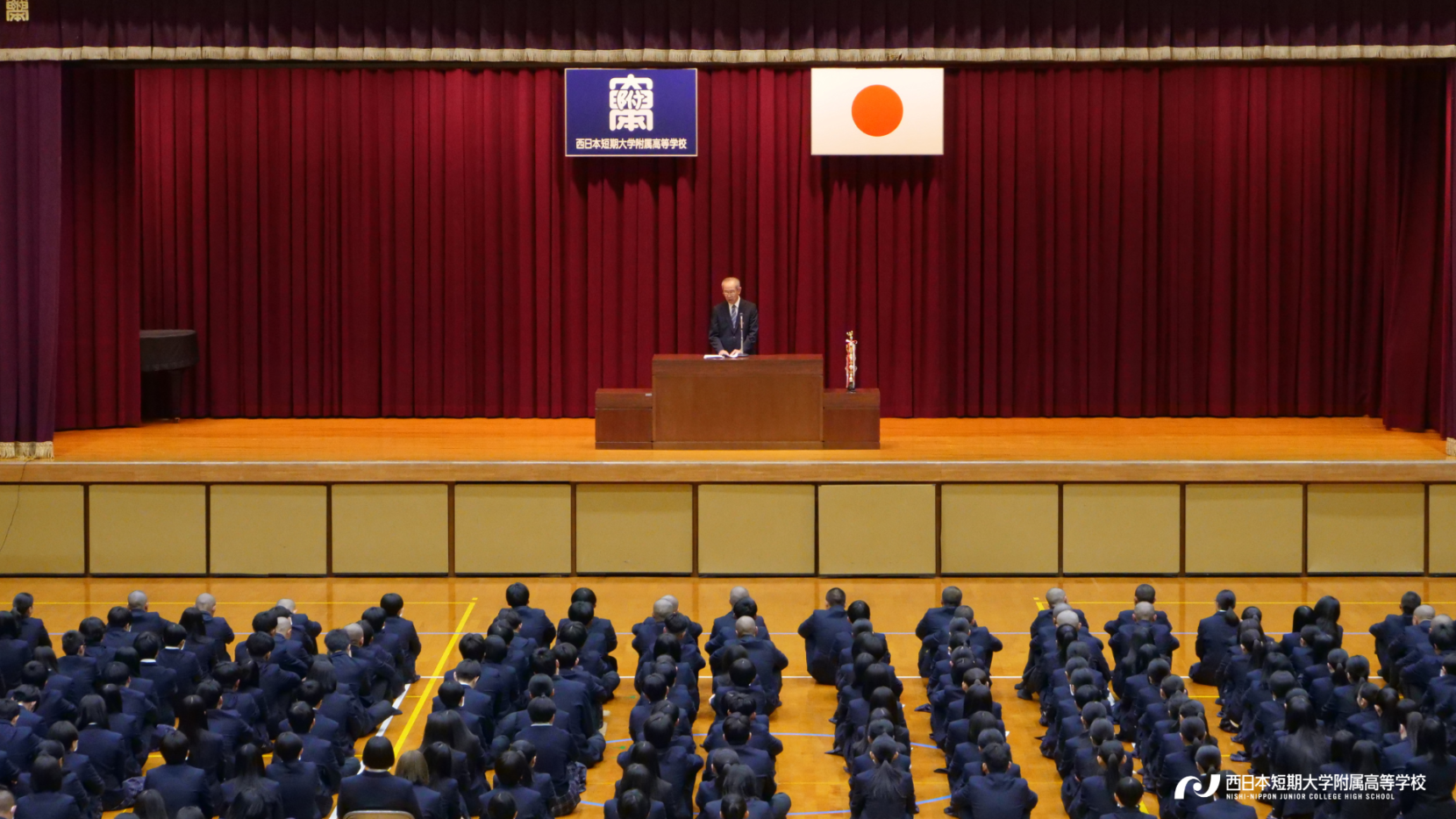 まずはじめに、今年度より学校長に着任した萩尾誠治先生より「目指す生徒像、目指す学校像」についての講話がありました。「不易と流行」「規律と自由」「凡事徹底」本校が大切にしている考え方を改めて確認する機会となりました。
