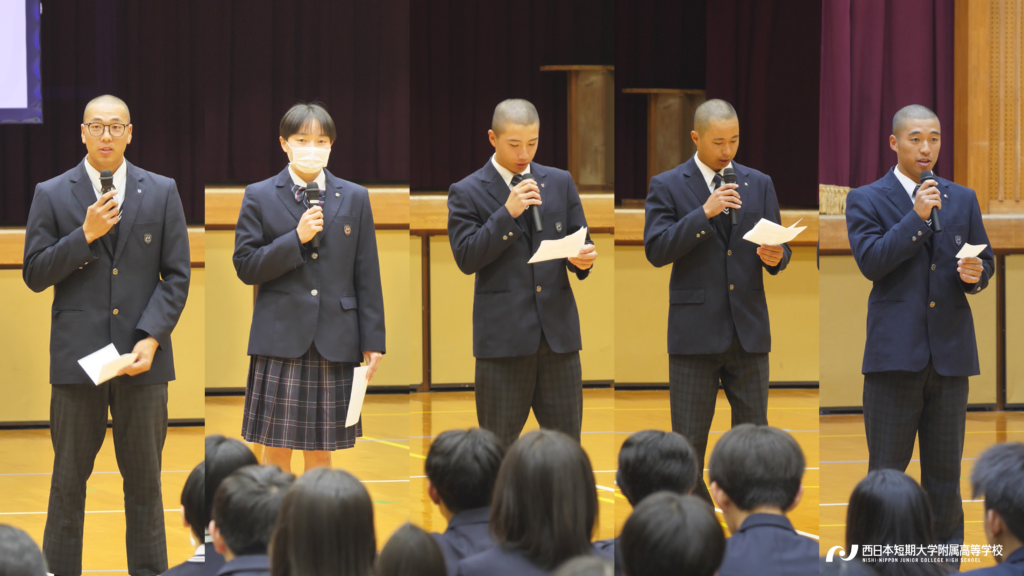 対面式の後には各委員長による委員会活動紹介、そして各部活動キャプテンたちによる部活動紹介がありました。