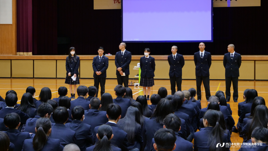この日、全学年が初めて一同に集いました。いよいよ令和8年度「チーム西短」の始まりです。