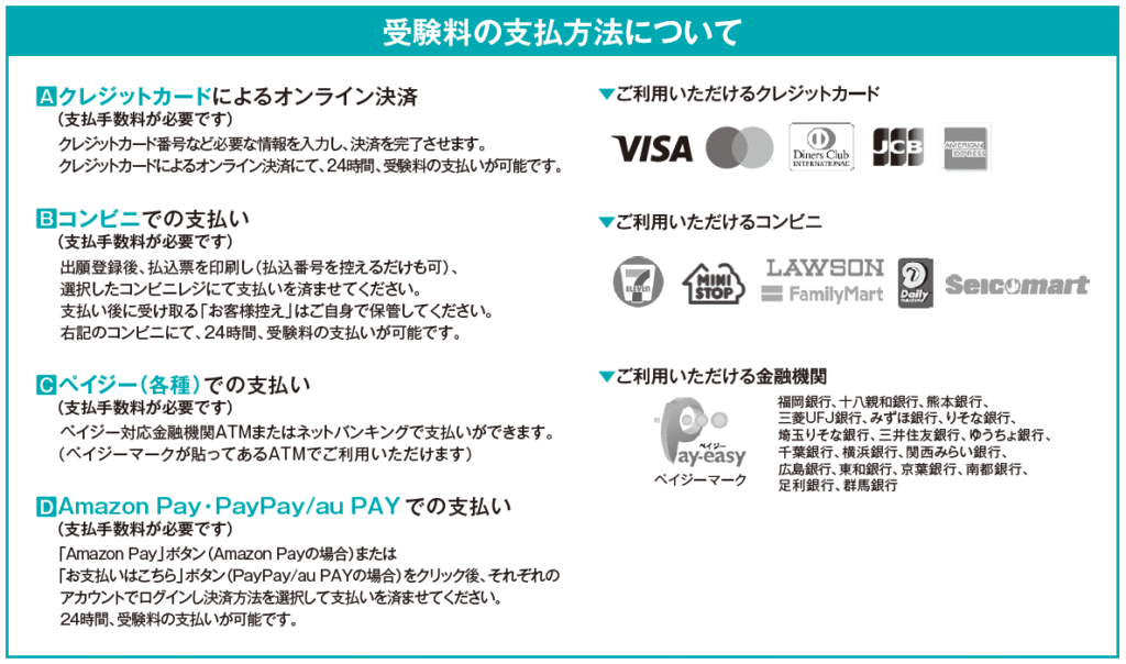 受験料支払期間最終日の午後4時までに支払いを完了してください。